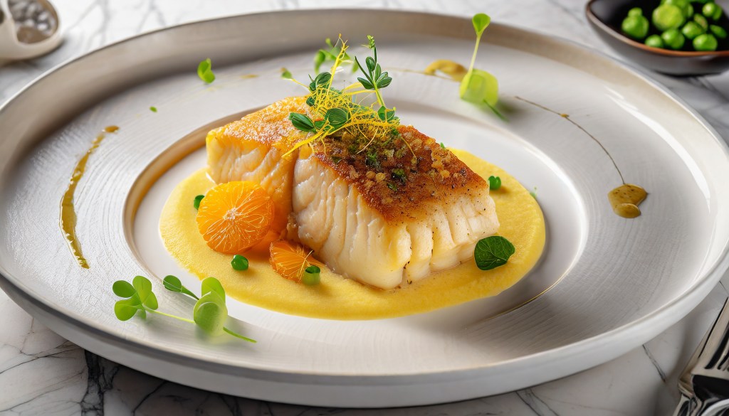 To serve, spoon a generous amount of the orange celeriac puree onto each plate. Place the pan-seared cod on top and sprinkle with the crushed roasted peanuts.