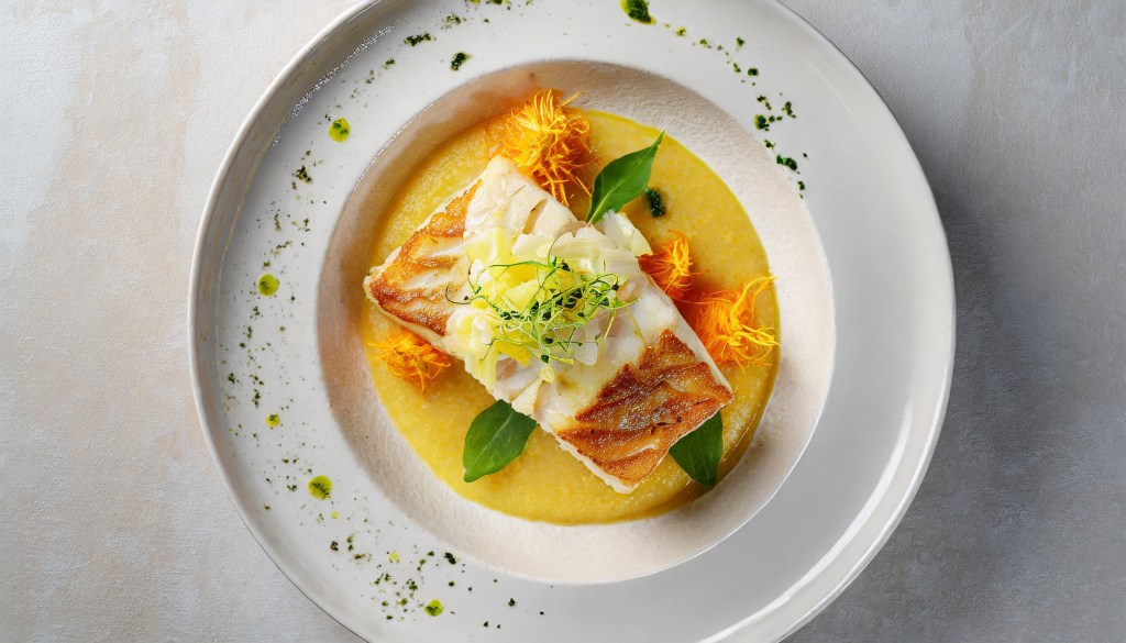 Pan-Seared Cod with Orange Celeriac Puree and Herb Butter Sauce